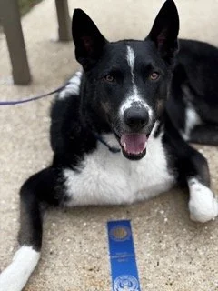 Stoli being awarded his Novice and Intermediate Trick Titles